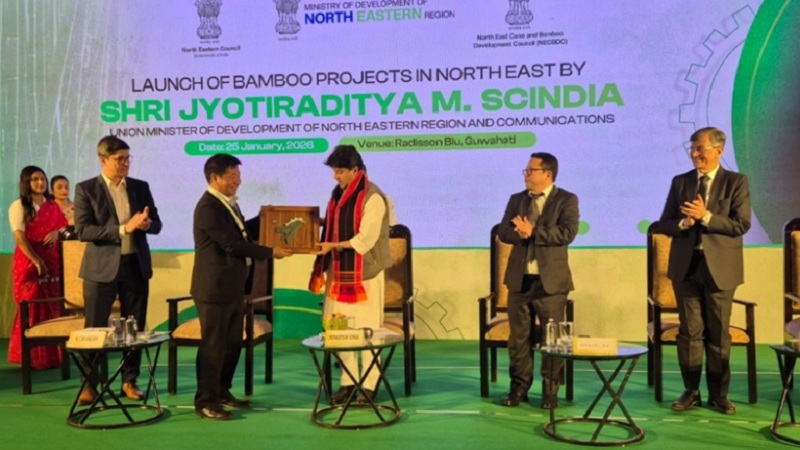 Guwahati: Union Minister for Development of North Eastern Region (DoNER) and Communications Jyotiraditya M. Scindia has launched two bamboo sector projects for the northeast with a total outlay of Rs 82.5 crore.