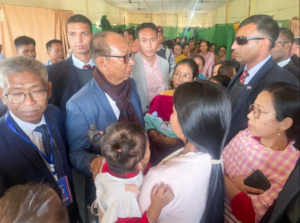 CM Khemchand then visited the Kalinagar relief camp housing the Hmar tribal IDPs. The Hmar tribe belongs to the Kuki-Zo community.