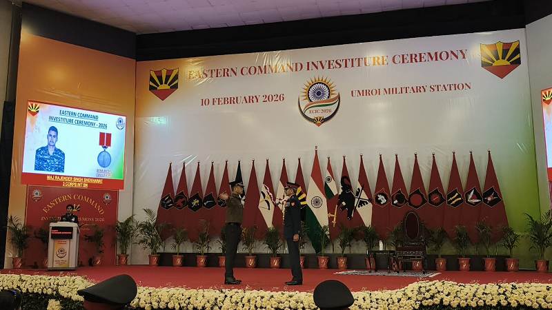 Shillong: The Eastern Command Investiture Ceremony 2026 was held on Tuesday (February 10) at Umroi Military Station in Meghalaya to honour Indian Army personnel for acts of gallantry, distinguished service and devotion to duty.